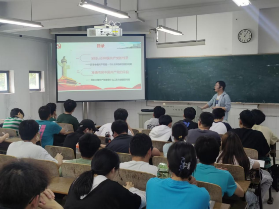 为扎实推进学习贯彻习近平新时代中国特色社会主义思想主题教育,进一步深化支部成员对党的性质宗旨的认识,筑牢理想信念根基,5月28日下午,电子信息系学生党支部在躬行A楼开展“强化党性 共铸信仰”专题党课,本次党课在A楼205和207教室同时进行,分别由支部书记陶清、支部教师党员吴慧梓主讲。