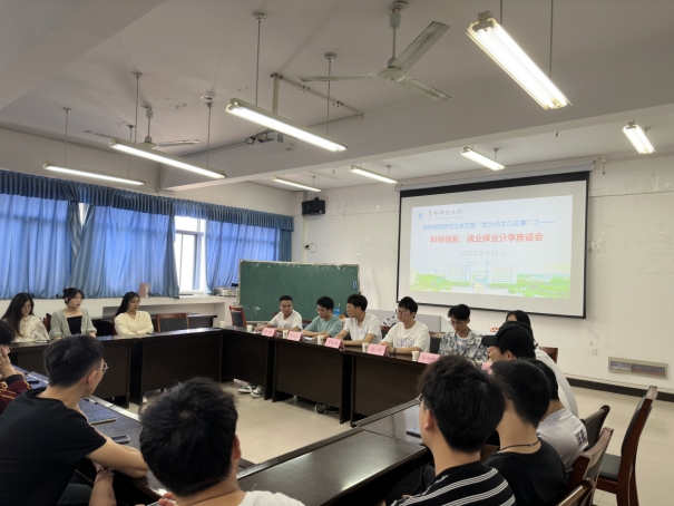 丁智勇首先说明本次活动的目的和意义,介绍了分享嘉宾们在研究生阶段取得的成绩和就业情况。接下来,11位研二同学一一分享了自己的科研学习经历和择业就业过程,同时结合专业特点介绍了个人的学习体会和科研经验,并给出了自己的建议。个人经验分享后活动进入座谈环节,研一同学踊跃提问发言,研二同学耐心回答解惑。座谈会现场气氛活跃,研一同学纷纷感到受益良多。