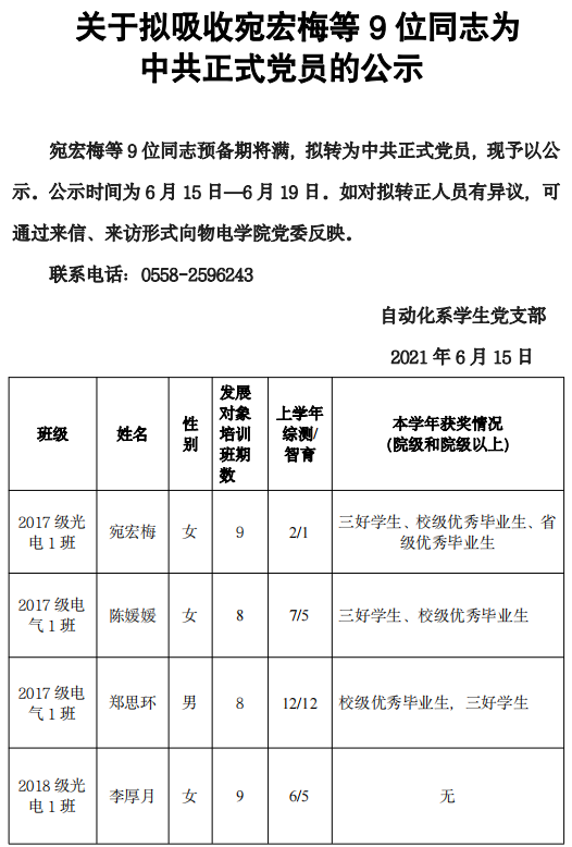 上一条: 我院上半年发展党员工作顺利结束 下一条: 物理系学生党支部2021年上半年党员转正公示