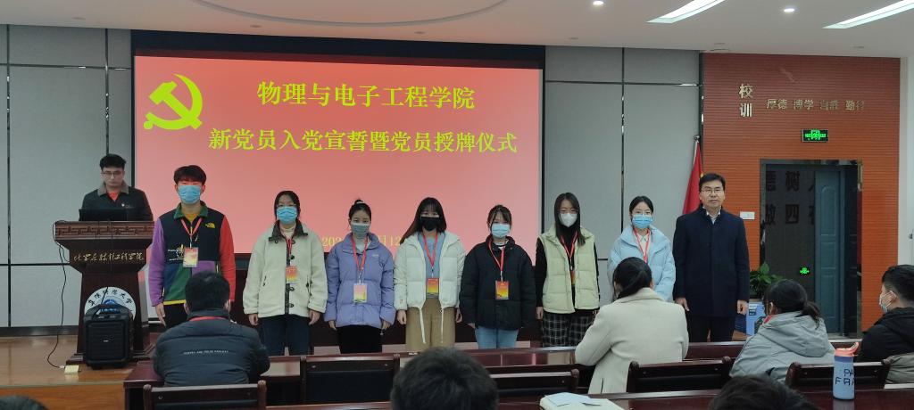12月12日,我院在新工科楼二楼报告厅举行新党员入党宣誓仪式,全院新发展的38名预备党员面向党旗庄严宣誓,这标志着我院2021年发展党员工作圆满结束。