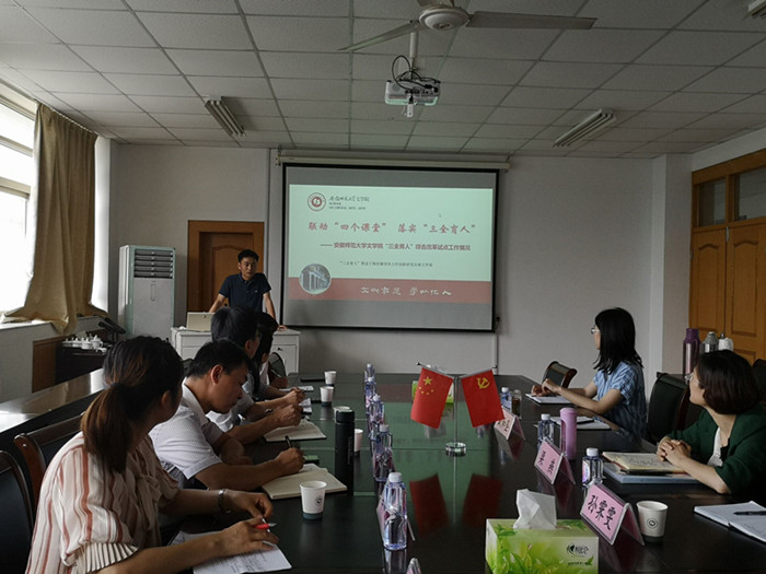 为全面落实立德树人根本任务,推进学院“三全育人”综合改革试点工作开展,2020年7月3日,我院党委书记吴学军率学院学生工作人员一行6人赴安徽师范大学文学院和物理与电子信息学院进行学习交流。