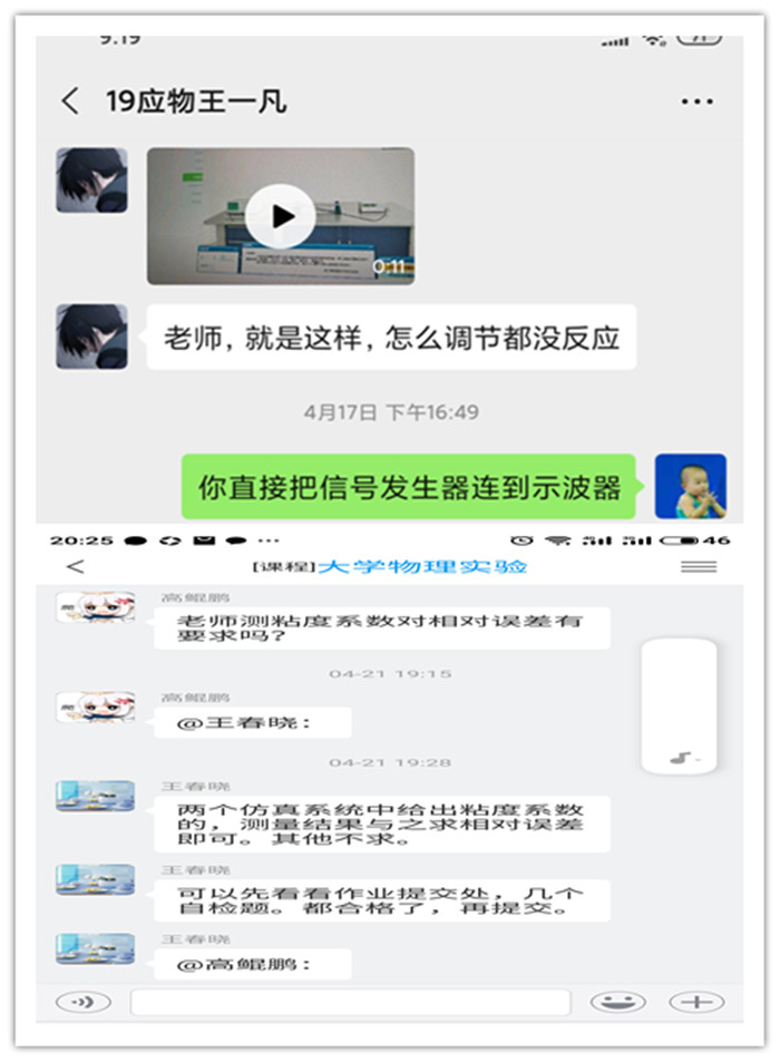 让学生宅在家里做实验,这种方式不仅可以充分激发学生的学习兴趣,锻炼学生的动手能力、独立解决实验中出现问题的能力和分析实验误差来源的能力,而且也利于学生“个性”的培养,从而保证疫情防控期间实验教学进度和教学质量。(撰稿:赵晓云 图片:各班群 学院审核:朱勇)