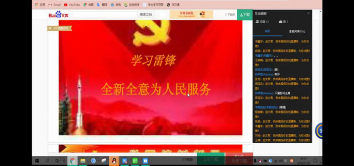 第三部分,团支书赵文君又带领大家学习了习近平总书记给北京大学援鄂医疗队全体“90后”党员的回信,以及给在首钢医院实习的西藏大学医学院学生的回信。勉励同学们以广大医务工作者为榜样,珍惜学习是时光,练就过硬本领,毕业后到人民最需要的地方,弘扬雷锋服务人民、助人为乐的奉献精神。最后,赵文君呼吁大家在疫情期间,始终与党和人民群众一起,与疫情斗争到底,让雷锋精神在这个抗“疫”人民战争中闪耀出更绚丽的光辉!