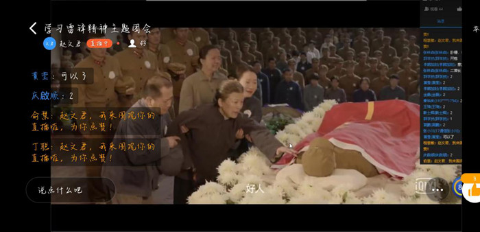 第二部分是合唱《学习雷锋好榜样》这首歌曲,赵文君在直播间为大家播放了这首歌,并通过连麦的方式与大家一起合唱,“学习雷锋好榜样,忠于革命忠于党”,这是歌词里面的内容,更是鼓励大家、倡导大家要去做的事情。