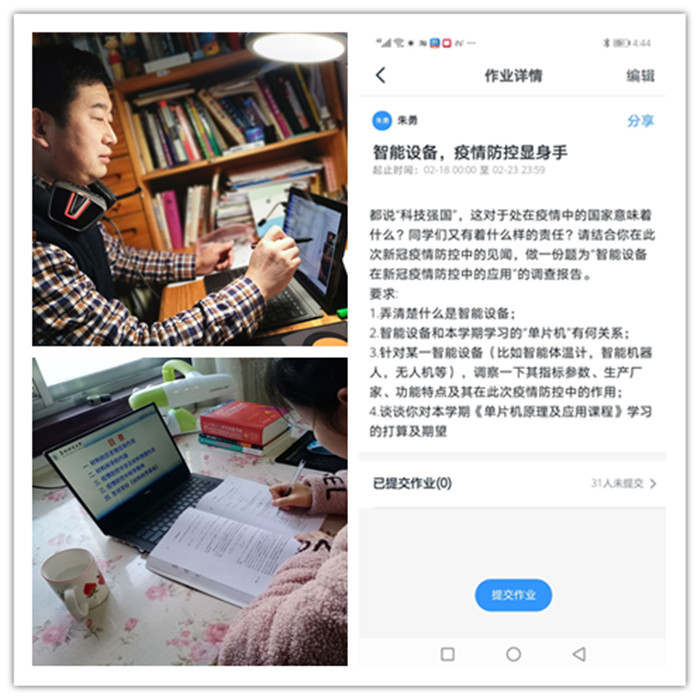 “都说‘科技强国’,这对于处在疫情中的国家意味着什么?同学们又有着什么样的责任呢?”物电学院副院长朱勇在线上讲授“单片机原理及应用”时对学生抛出了这个问题,引发学生思考,在教学中培养学生科研创新意识和家国情怀。朱勇在教学中,结合防控过程中人工智能设备使疫情防控工作变得“如虎添翼”的案例,讲述智能测温、远程医疗、大数据分析、智能协作机器人等智能硬件、软件的开发与基础知识紧密相连,告诉学生“卡脖子”技术来源于基础研究,改变这一窘境,摆脱依赖和限制,奋起直追,是当代大学生肩负的使命!“中国梦”实实在在扎根于我们每一天的学习、每一点的进步,由每一个学生组成。该院“材料科学基础”专业核心课程老师张朋在课程教学中,通过讲述上海理工大学光学团队针对新冠病毒的多通道快速检测的紧迫需求,协同其它科研院所争分夺秒研发出恒温荧光检测试剂盒及通用恒温荧光检测仪的事例教育学生,科研人员应围绕国家重大战略需求,在各自工作岗位上勇攀高峰、攻坚克难,联合攻关,勇做新时代科技创新排头兵。他同时希望同学们加强防疫科普宣传,倡导科学防控,弘扬科学精神,主动学习,把此次疫病发生的起源、传播途径、防控治疗措施等相关信息与举措作为新的学习资料,拓展个人知识结构,提升疫病防控实践能力,进一步向身边的同学和亲朋好友宣传有关疫情的科学防护措施,力所能及地为防控做贡献。