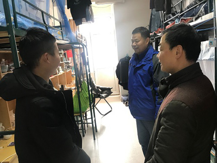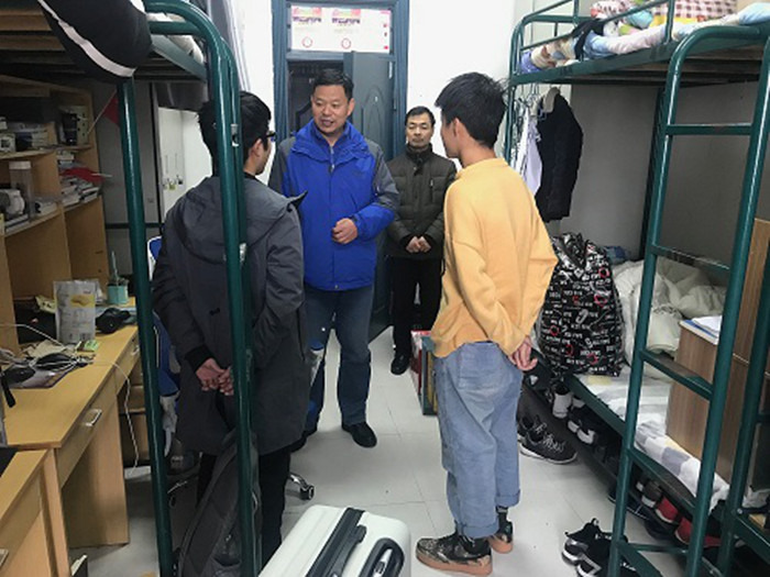 期末临近,2019级新生即将迎来了大学生涯的第一个春节假期。2020年1月8日上午,我院党委书记马健、党委副书记田志坚以及部分辅导员对新生宿舍进行走访慰问,了解学生学习生活状态,叮嘱假期注意事项。