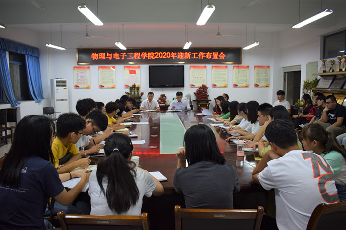 为细化和完善迎新具体工作,9月14日下午,在实验C楼306会议室,我院党委书记吴学军、党委副书记田志坚、党委秘书何文,团委副书记辛敏、辅导员助理、学生会干部和各班班长共同参与迎新研讨会,到会人员集思广益,一同参与修定和完善工作计划,经过研讨,拟定了迎接新生的工作具体方案。会议要求,所有参与迎新工作的人员要有热情无私、守纪有序、高度负责的工作态度,把迎新工作方案有序落实。