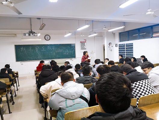 为进一步加强班级优良学风建设,帮助同学们端正学习态度,增强诚信意识,严肃考风考纪,同时,在新的疫情防控形势下,提高学生防护意识,2018级光电信息科学与工程1班与2018级通信工程1班于1月8日下午在躬行楼A楼105教室召开了期末安全教育主题班会。此次班会由辅导员辛敏主持召开,2018级光电信息科学与工程1班与2018级通信工程1班全体同学参加此次会议。
