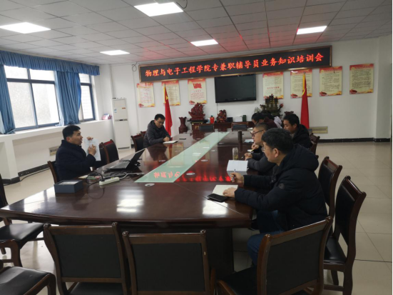 为进一步提高辅导员工作业务能力,强化学生工作业务水平,2020年3月13日下午,我院在躬行C楼306会议室组织召开专兼职辅导员业务知识培训会,院党委书记吴学军、副书记张传智和所有专兼职辅导员参加会议,会议由吴学军主持。