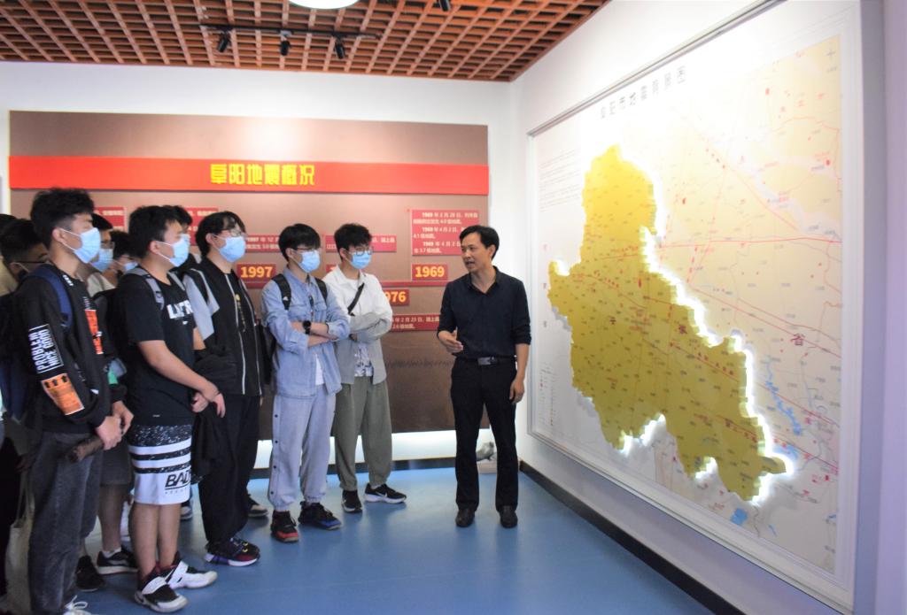 5月11日上午,我院组织部分学生到阜阳市防震减灾科教展示馆进行参观,阜阳市地震局业务科负责人张庆英为大家做了详细的解说。他向大家介绍了阜阳地震构造及区域地震概况、阜阳行政区域内地震监测与预报工作、抗震设防工作以及地震自救与互救知识等。他提醒大家掌握科学、合理的逃生知识,可以有效减少地震伤亡,并建议大家一起参与到避震减灾科普工作中来。