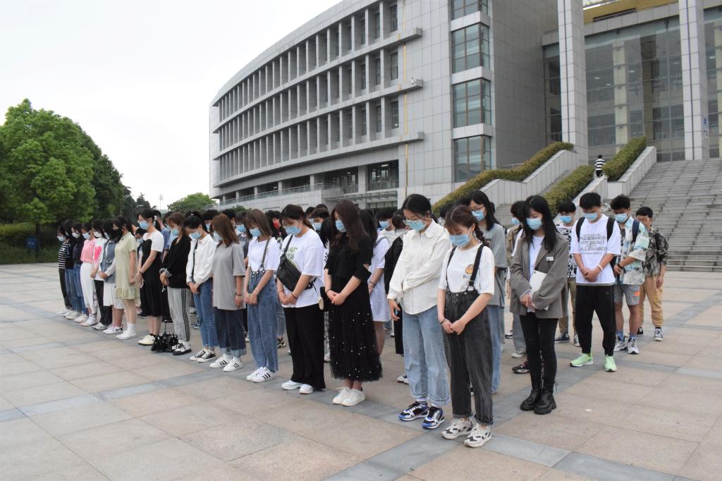 2018级电气1班鲍丙云在活动开始后向大家介绍了活动意义,全体同学在逸夫图书馆广场面对国旗默哀一分钟。