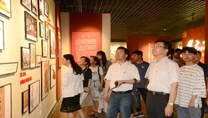 党员在展厅内观看中国共产党创建历史图片展