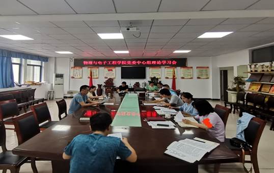 7月15日下午,物理与电子工程学院党委中心组集体学习会,组织学习习近平总书记在庆祝中国共产党成立一百周年大会上的重要讲话精神,并进行研讨交流。物电学院党委副书记张传智主持会议。