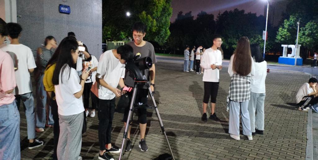在躬行C楼楼下,电子科普协会成员提前调试好望远镜,为大家观月做好准备。大家逐个通过天文望远镜“近距离”进行观月。同学们表示这是第一次 这么清晰的观看到月球的外观,看到了月球上坑坑洼洼的陨石坑。通过观月活动,让同学们深刻感受到了宇宙的浩瀚和大自然的神奇,增强了他们对宇宙天体知识学习的兴趣。
