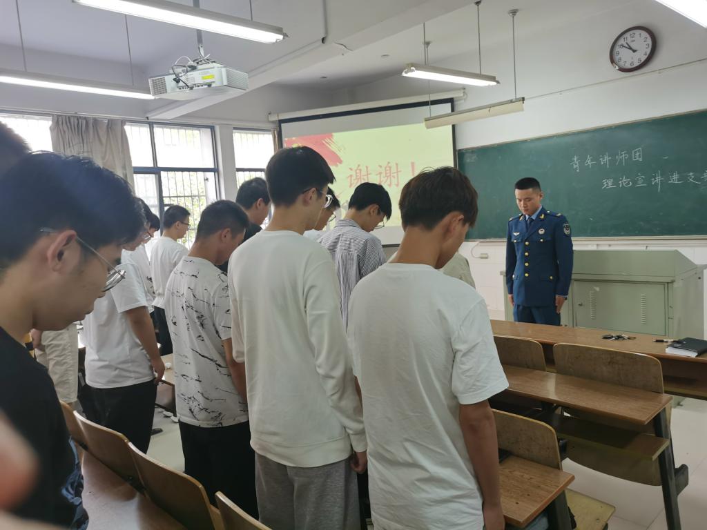 宣讲会最后,全体同学起立默哀一分钟,向革命烈士寄托哀思与敬意,表达最崇高的敬意。