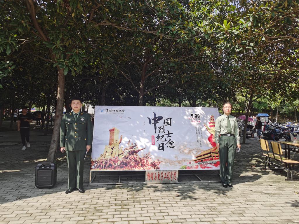 我院当天在还在西湖校区一区食堂门口设立宣传台,邀请我院两位退伍士兵郭金金和宋一凡向过路的师生宣传国家烈士纪念日。