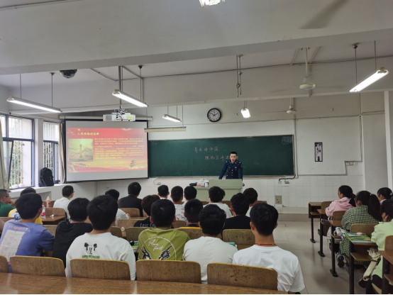 马汉辉向大家介绍了战争中牺牲的烈士的故事,并结合个人的兵役生涯,着重向大家介绍了 “空中突击手”孙生禄等在抗美援朝中牺牲的空军烈士。他还就喀喇昆仑高原中印边境冲突事件告诉大家和平年代的战争依然存在,革命烈士还在增加,大学生们应该铭记历史,珍惜来之不易的繁荣安定。