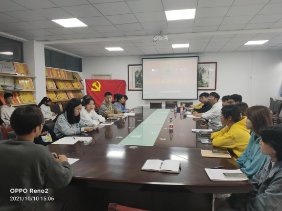 10月10日,物理系学生支部在躬行楼C306会议室学习习近平在纪念辛亥革命110周年大会上的讲话。本次活动由物理系学生党支部30名党员参与,党务助理龚振杰主持。