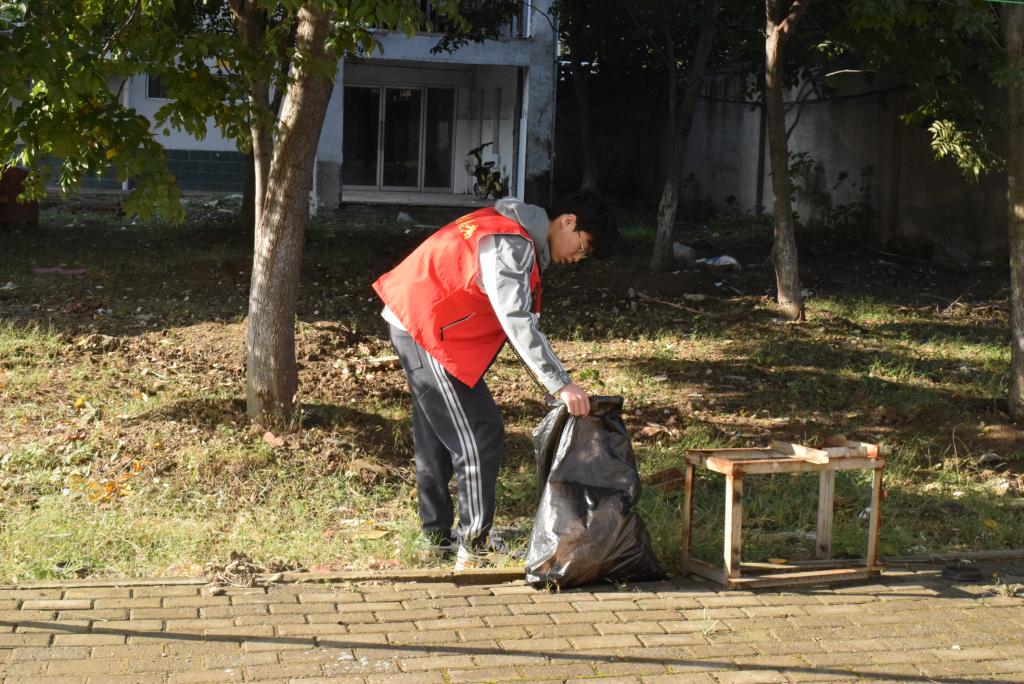 报名参与此次义务清扫活动的志愿者共分为九组,在青年志愿者协会负责人分发工具、交代任务后,便由各组组长带队,从逸夫图书馆去往相应的区域进行清扫。志愿者们始终保持着高昂的干劲,擦拭,清扫,弯腰,捡起,动作干净利落,他们辛勤劳动的身影遍布校园各个角落,在阳光掩映下熠熠生辉,勾勒出一道亮丽的风景线。经过此番细致的清扫,在志愿者们的共同努力下,同学们的学习生活环境变得洁净、舒心。活动尾声,志愿者们再次集合于逸夫图书馆前,一一交还工具并合影留念。