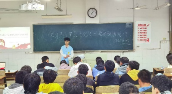 为进一步深入学习领会习近平总书记“七一”重要讲话精神,切实增强新生团支部书记的思想引领与队伍建设,使他们尽快熟悉团支部工作内容,尽快投入团支部的工作,10月24日,我院团委委员石英奇走进2021级电子1班团支部进行理论宣讲。2021级各新生团支部书记也参加了此次专题学习会,会议由石英奇主持。