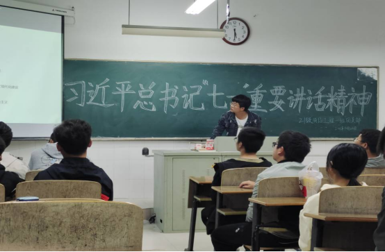 为深入学习领会习近平总书记“七一”重要讲话精神,10月26日下午,2021级通信工程1班、2021级物理学1班团支部分别组织本班全体同学在躬行A楼教室学习习近平总书记在庆祝中国共产党成立100周年大会上的重要讲话精神。