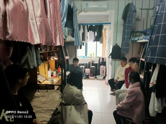 每到一个宿舍,何娟等都细心地询问学生学习、生活上是否适应;倾听学生反映的问题;逐一排查学生宿舍卫生状况和安全隐患;引导学生树立学习目标、养成良好的生活习惯;指导学生们做好学业的规划、积极参与学科竞赛。她们与同学们进行了愉快地交流和谈心。何娟表示学院高度重视新生的学风,会努力解决学生在日常学习生活中的实际问题,并结合文明宿舍评比,叮嘱学生要保持宿舍卫生、养成良好宿舍学风,制定宿舍规定,严格作息时间,遵守学生公寓管理方面的规定,注意宿舍用电安全等,此外,何娟还鼓励学生从低年级开始就要关注大学生物理学术竞赛(CUPT),号召同学们以赛促学,开启大学学习新征程。