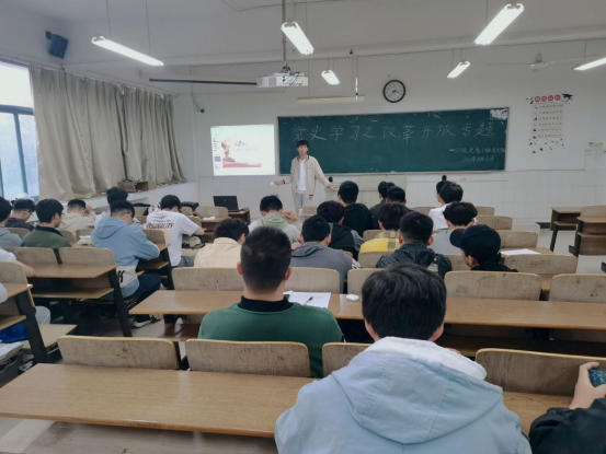 为让同学们在新的历史条件下不忘初心牢记使命,更加深入地了解近代以来久经磨难的中华民族迎来了从站起来、富起来到强起来的伟大飞跃,11月6日下午,2021级光电1班团支部在躬行楼A楼201教室开展了党史学习之改革开放专题团课,学习活动由团支部书记杨再磊同学主持,班级全体人员参与。