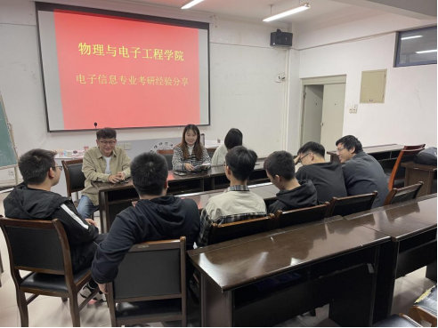 为把“我为师生办实事”实践活动贯穿于党史学习教育过程中,切实帮助考研学生在考前稳定心态,积极备考,11月5日和10日,物理与电子工程学院研究生党支部在躬行楼C楼505和306会议室分别举办了两场“我为师生办实事”之考研经验交流会。支部研究生党员安凯迪、宛宏梅、赵文君、章超凡及研究生代表谷裕、肖夕茹、胡欣怡分两个小组与2018级正在备考电子信息和学科教学(物理)两个专业的十余名考生进行了座谈交流。