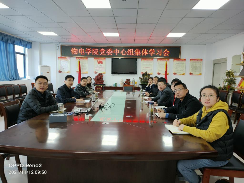 11月12日上午,物理与电子工程学院党委理论学习中心组举行集体学习会,学习党的十九届六中全会精神。中心组全体成员参加了集体学习,学院党委书记吴学军主持了集体学习会。