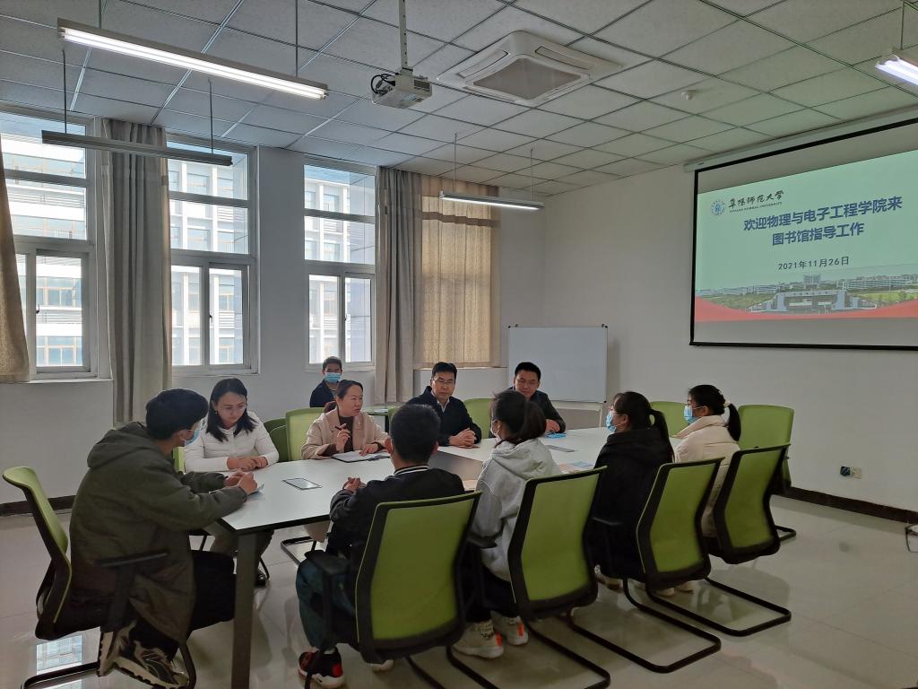 为扎实推进“七进”工作,11月26日上午,物理与电子工程学院党政领导吴学军、朱勇、张传智、何娟与20余名大一新生一起走进图书馆,了解图书资源建设和利用情况,研讨如何利用好图书资源推进人才培养工作。图书馆馆长王申红接待了吴学军等一行。