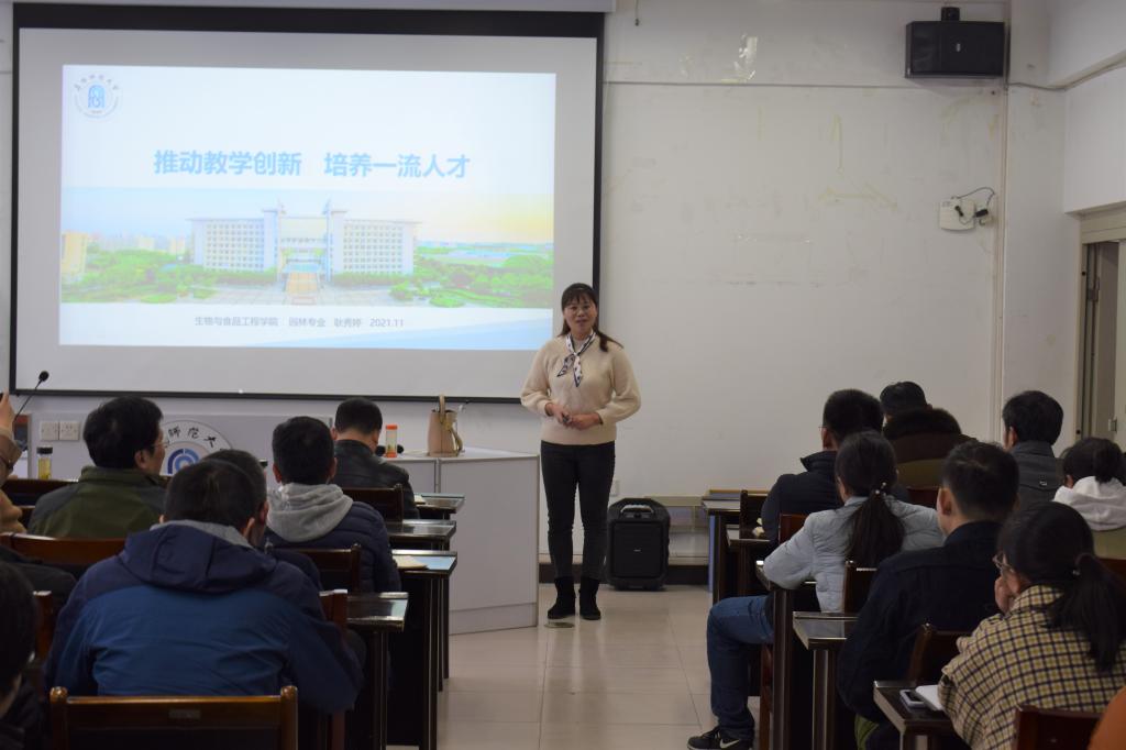 为引导教师积极开展教学改革与创新实践,进一步做好教师教学创新大赛准备工作,物理与电子工程学院邀请首届教师教学创新大赛国赛二等奖获得者、我校生物与食品工程学院耿秀婷老师于12月1日在躬行C楼505室作了题为“推动教学创新,培养一流人才”的讲座。学院党政领导和全体教师参加了此次讲座。