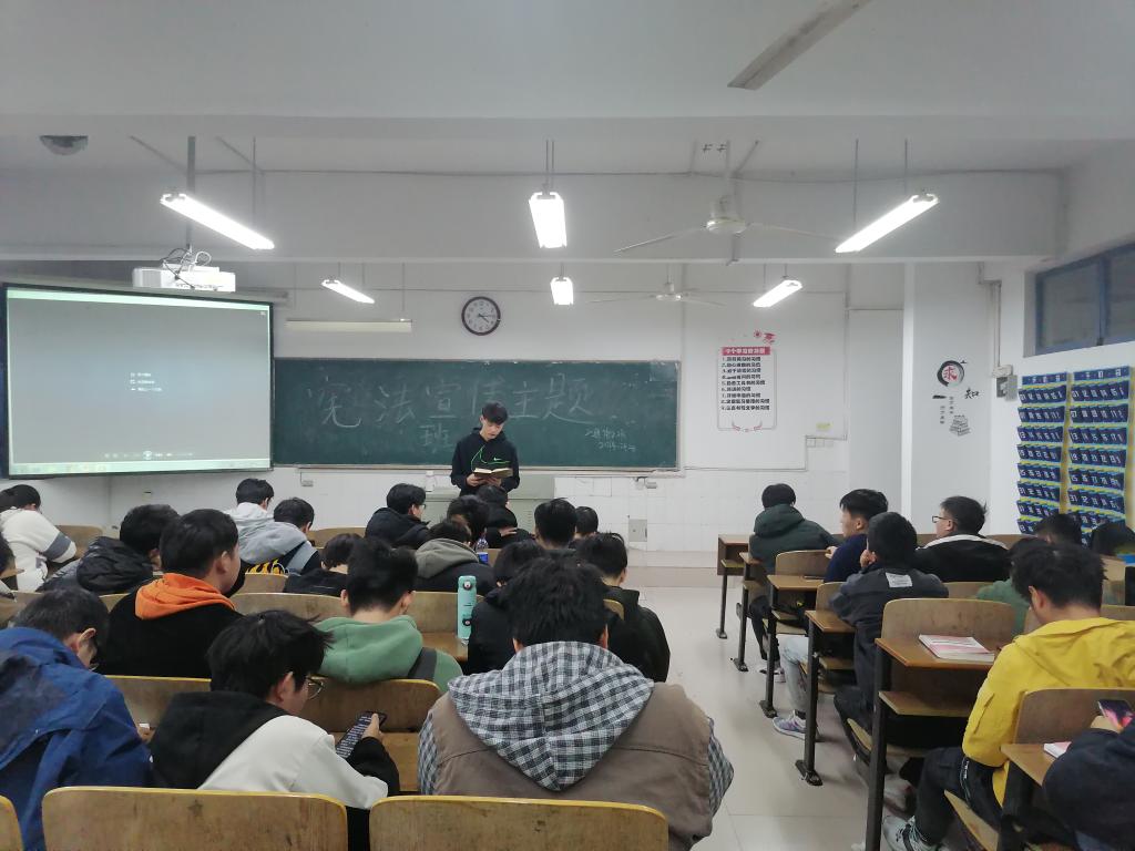 为使同学们进一步提升宪法意识,弘扬宪法精神,12月2日,2020级通信工程2班在躬行楼A楼105教室举办了学习宪法主题教育班会,2020级通信工程2班全体同学参加。