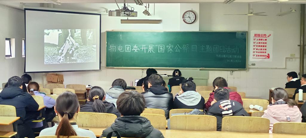 下午,学院在躬行A楼开展“铭记历史 吾辈自强”国家公祭日主题纪念活动,参加活动的有各年级主要学生干部代表。