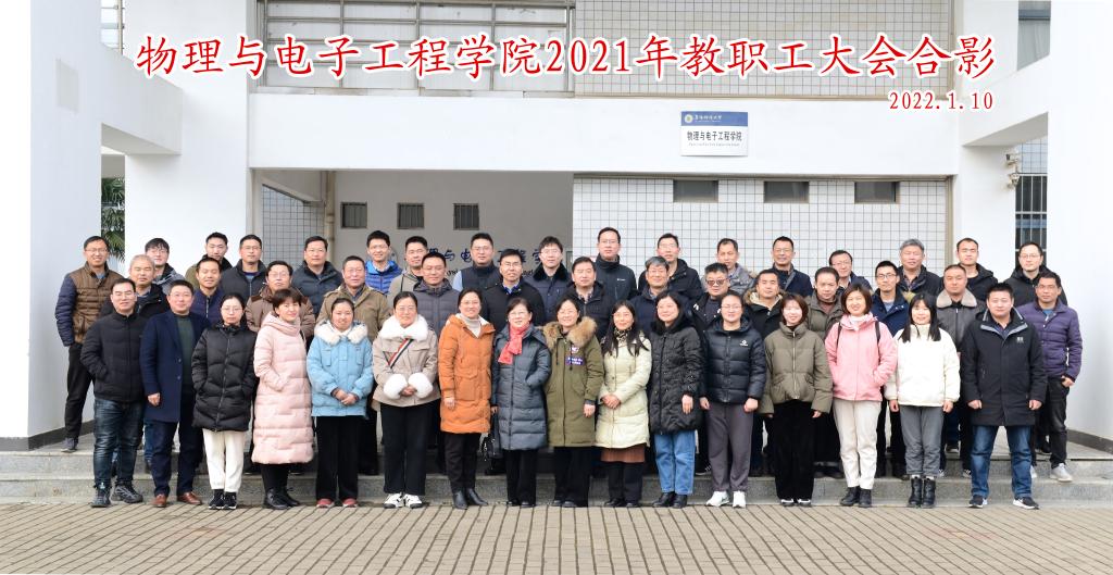 2022年1月10日上午,物理与电子工程学院2021年教职工大会在躬行C楼505多媒体教室隆重召开,学院党委书记吴学军,党委副书记、院长朱勇,党委副书记张传智,副院长何娟,工会主席吴韬以及全院教职工出席此次会议。大会由党委副书记张传智主持。