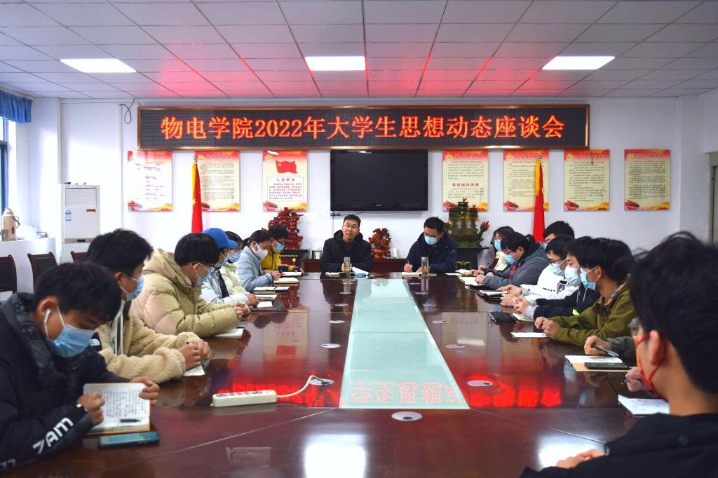 为了全面深入了解物理与电子工程学院学生的思想动态,把握学生的思想状况,精准做好学生思想政治引导工作,学院于2月24日下午在躬行C楼306会议室召开大学生思想动态座谈会。学院党委书记吴学军、副书记张传智以及全体辅导员、各年级学生代表、研究生代表参加此次会议,会议由吴学军主持。
