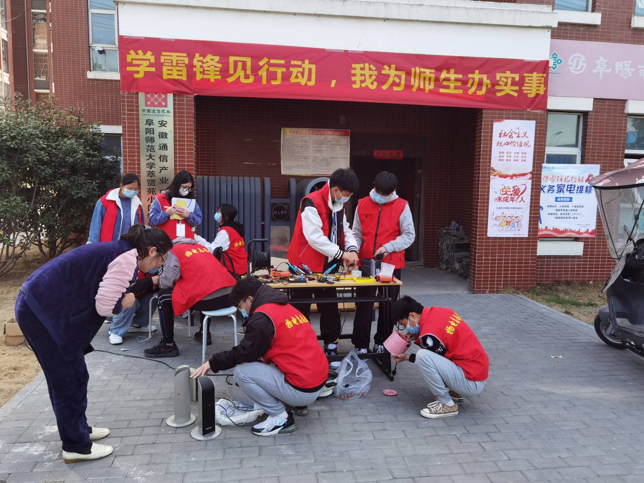 为弘扬雷锋精神,增强学生服务社会、奉献社会的意识,3月5日,物理与电子工程学院组织青年志愿者在阜阳师范大学萃贤苑家属区举办义务维修家电活动。参与本次活动的志愿者有学院学生会、青年志愿者协会及党支部成员。
