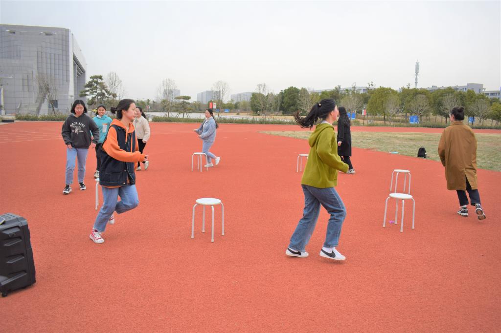 尽管初春的风还是冷的,女生们参与活动的热情仍然很高。在主持人的指引下,大家一起分成几组一起玩萝卜蹲、绑腿跑、抢椅子、爱的抱抱等游戏。现场协助的男同学也纷纷参与进去,大家玩的不亦乐乎。