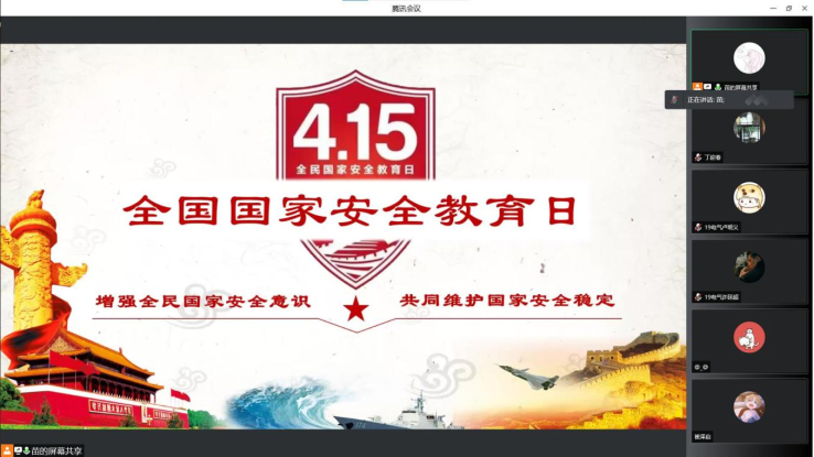 4月15日,是我国全民国家安全教育日,为积极宣传学习国家安全知识,牢固树立国家安全观念。2019级电气工程及其自动化1班团支部于4月16日20:00召开线上云团课,支部全体团员参加会议。
