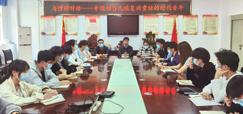 为庆祝中国共青团成立100周年,进一步贯彻“五四”精神,5月3日中午,物理与电子工程学院团委在C306会议室开展“与信仰对话”专题学习会。学院党委书记吴学军做专题宣讲报告,党委副书记张传智、辅导员吴慧梓、以及2020级和2021级各班级团支部书记参加了此次报告会。报告会由吴慧梓主持。