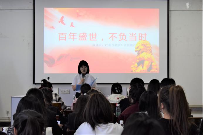 演讲开始,参赛选手根据抽签顺序依次登台展示,配合着气势磅礴的伴奏,将他们的风格发挥的淋漓尽致。演讲过程中,每位参赛选手都精神饱满、感情充沛、表达流畅,演讲内容紧扣“庆祝建团百年”的主题,带领大家共同追忆中国共青团百年来不断发展壮大的光辉岁月,展示出青年团员对共青团的热爱。台下的观众全神贯注地倾听,现场氛围热烈,掌声此起彼伏。吴慧梓在点评时肯定了选手们在情感和表现力上的出色,她同时指出选手们的不足之处,从着装、面部表情及肢体动作等方面提出了几条针对性建议。