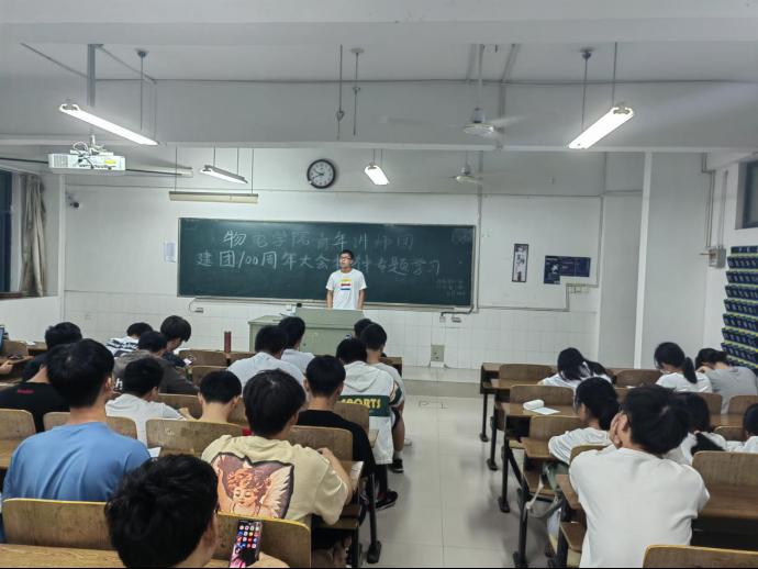 为深入学习建团一百周年大会精神,鼓励青年同学们努力奋斗,5月26日晚上,2021级应用物理学1班团支部和2021级光电信息科学与工程1班团支部于躬行楼A104举行以“青春孕育无限希望,青年创造美好明天”为主题的团课活动。会议由辅导员李军老师主持。
