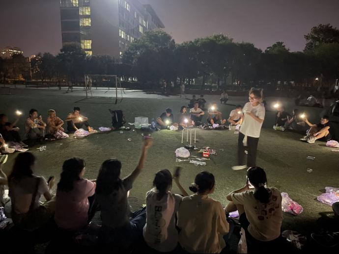 喜迎二十大,欢度国庆节,为丰富同学们的假期生活,激发和释放同学们的爱国热情,增强班级凝聚力,2022年10月1日,2021级物理学4班在西湖校区风雨操场举办一场以唱红歌、讲红色故事、分享红色理想等为内容的班级活动,为祖国庆生。