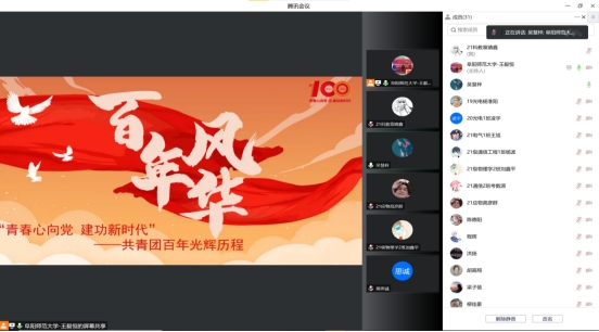 “时代召唤青年,青年创造未来”。为深入学习领会习近平总书记关于青年工作的重要论述,团结带领广大青年坚定不移跟党走,以崭新的姿态迎接党的二十大胜利召开。10月14日中午,校青年讲师团成员王毅恒为物理与电子工程学院开展“青春心向党,建功新时代”主题线上宣讲报告会。此次宣讲由我院团委负责人吴慧梓主持,2019、2020以及2021级团支书参与。