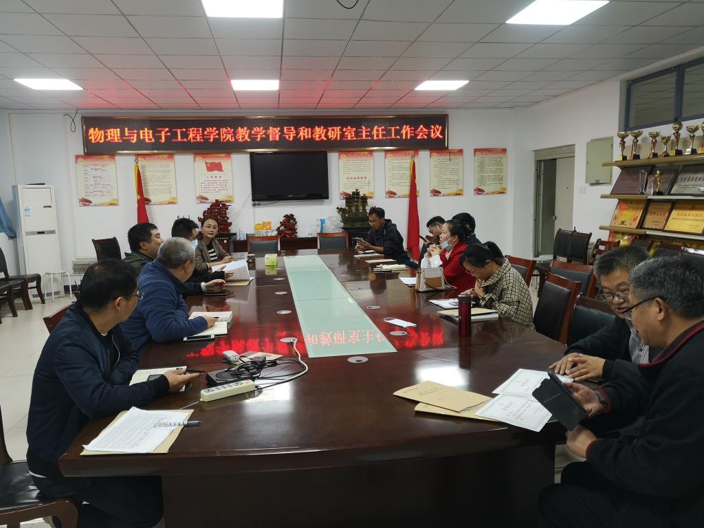 为进一步加强本科生人才培养,强化学院教育教学管理,推动本科教育教学改革,切实提高教育教学质量。10月26日,物理与电子工程学院召开了教学督导和教研室主任工作会议。参加此次会议的有学院全体督导组成员和各教研室主任。本次会议由学院副院长何娟主持。