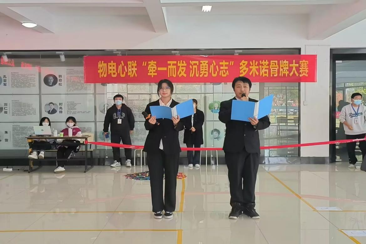 为丰富大学生的校园生活,缓解学习疲劳,加强同学间的友谊,培养默契,共同迎接未来的学习与挑战,我院心联于2022年11月20日上午9:00在汉风楼一楼举办了以“牵一而发 沉勇心志”为主题的多米诺骨牌大赛。此次活动面向物理与电子工程学院2021级、2022级本科学生。