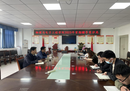 为进一步加强学院辅导员队伍建设,提高全体辅导员的政治素养、育人能力和工作水平,也为提升学院学工队伍的理论学习和案例实操能力。4月14日上午,物理与电子工程学院在躬行C楼306举办了首届辅导员主题沙龙,参与本次沙龙活动的有物电学院党委书记吴学军、学工副书记张传智和学院全体辅导员老师,本次沙龙由学院副书记张传智主持。