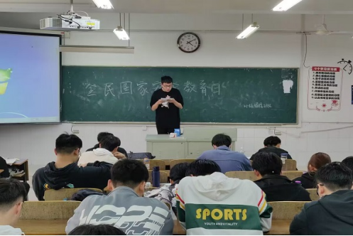 2021级通信工程2班团支书陈先伟根据国家安全的具体内容向同学们详细介绍了国家安全观的概念、内涵和意义,呼吁同学们要增强国家安全防范意识,认清国家安全形式,增强危机忧患意识,切实从自身做起保障国家安全。