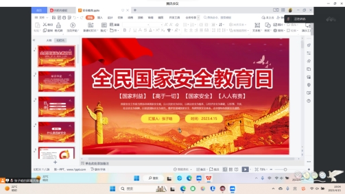 为普及国家安全知识,提升全民国家安全意识,增强防范和抵御安全风险能力,营造维护国家安全和社会安全的良好氛围。2023年4月15日,2021级电子信息科学与技术1班团支部于线上开展全民国家安全教育日主题团日活动。21级电子1班62名同学参与本次活动。