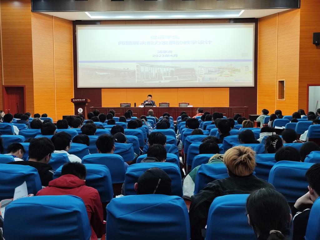 汤家合老师结合自身的成长经历,给同学们讲述了自己从一名实习教师成长为正高级教师的成长历程,勉励同学们要扎实学习,努力拼搏。他针对当前高中物理新课标、新教材和新高考,提出了促进学生问题解决能力发展的一系列教学策略和教学建议,并且对中学物理经典题型与解决方法进行了解读,给同学们深度剖析了促进问题解决的思路和策略。汤老师的报告内容丰富、精彩纷呈,引起了学生阵阵的掌声。讲座最后,汤老师还和同学们进行了深度的交流互动,并认真回答了每个同学的提问。