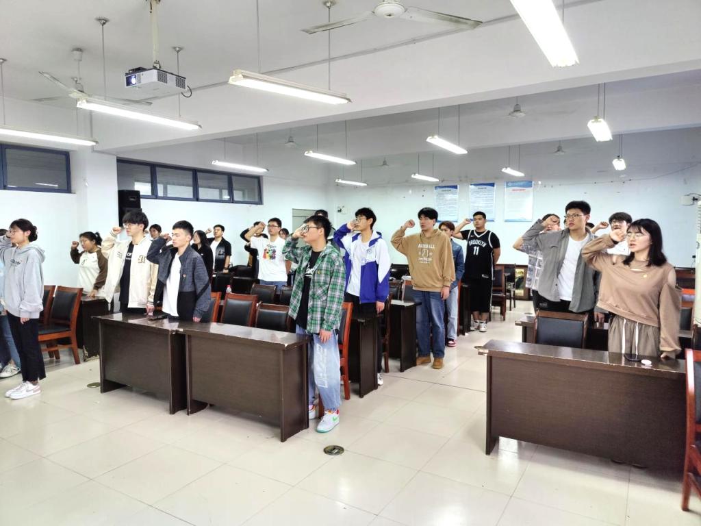 最后,杜雨凡带领全体成员重温入团誓词,让同学们再次明确自己的共青团员身份,明确自己的义务和职责,把誓词化为行动,不忘初心跟党走。通过与团旗、团徽合影的方式,同学们将青春誓言烙印在富有生机活力的图片中,展现出学院团员青年积极向上的精神面貌。